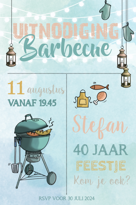 Hippe uitnodigingskaart voor 40e verjaardag met barbecue